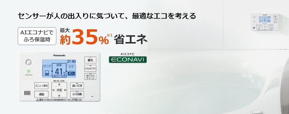 パナソニックのAIエコナビは、家族の生活パターンを学習して、必要な時に必要な量のお湯を自動で準備してくれます。