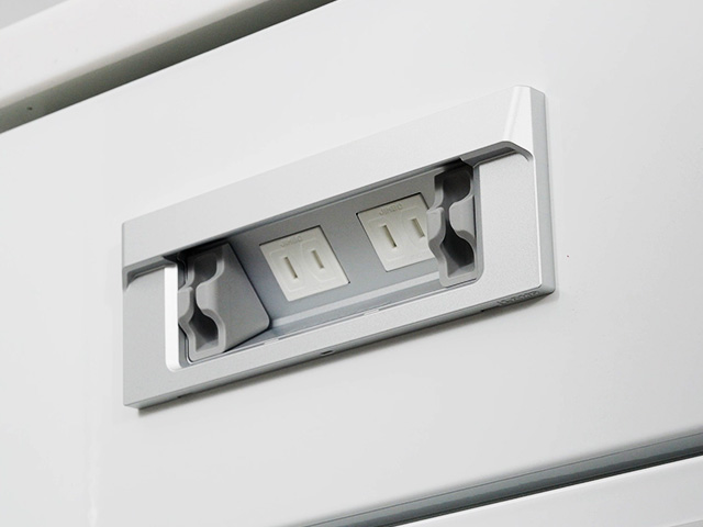 ミキサーやハンドブレンダーなど、調理家電をサッと使えるキッチン側コンセント。