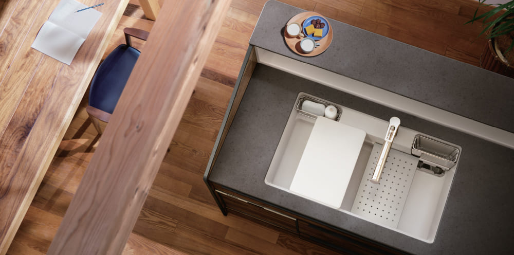 シンクの上だけで「洗う・切る・捨てる」がスムーズに完結する、家事効率を追求したシンクです。